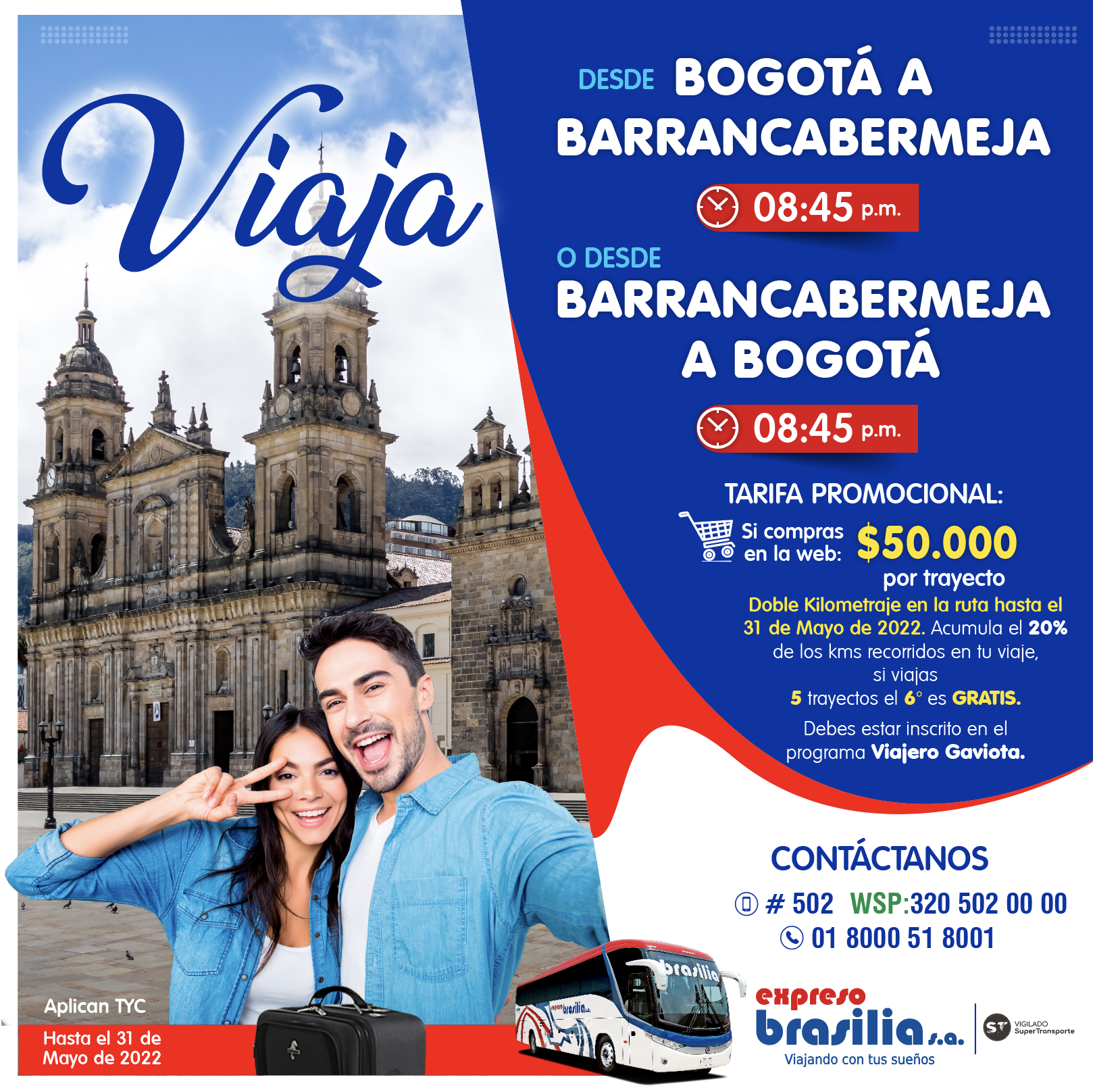 Si realizas la compra en nuestra página web expresobrasilia.com, pagas $50 mil por trayecto.